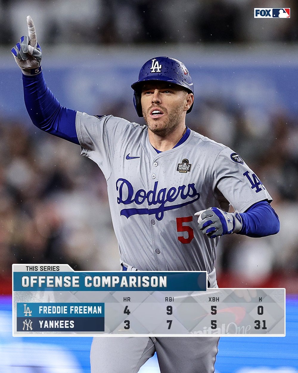 He has now homered in four straight games to start this World Series. At the time of his Game 4 blast, Freeman had knocked in more runs this series than the entire Yankees team. His 10 RBIs are the most by a Dodgers player in a World Series. This time, though, it wasn’t the dagger that it was in Game 3, as the Yankees’ lineup battled back. — Rowan Kavner