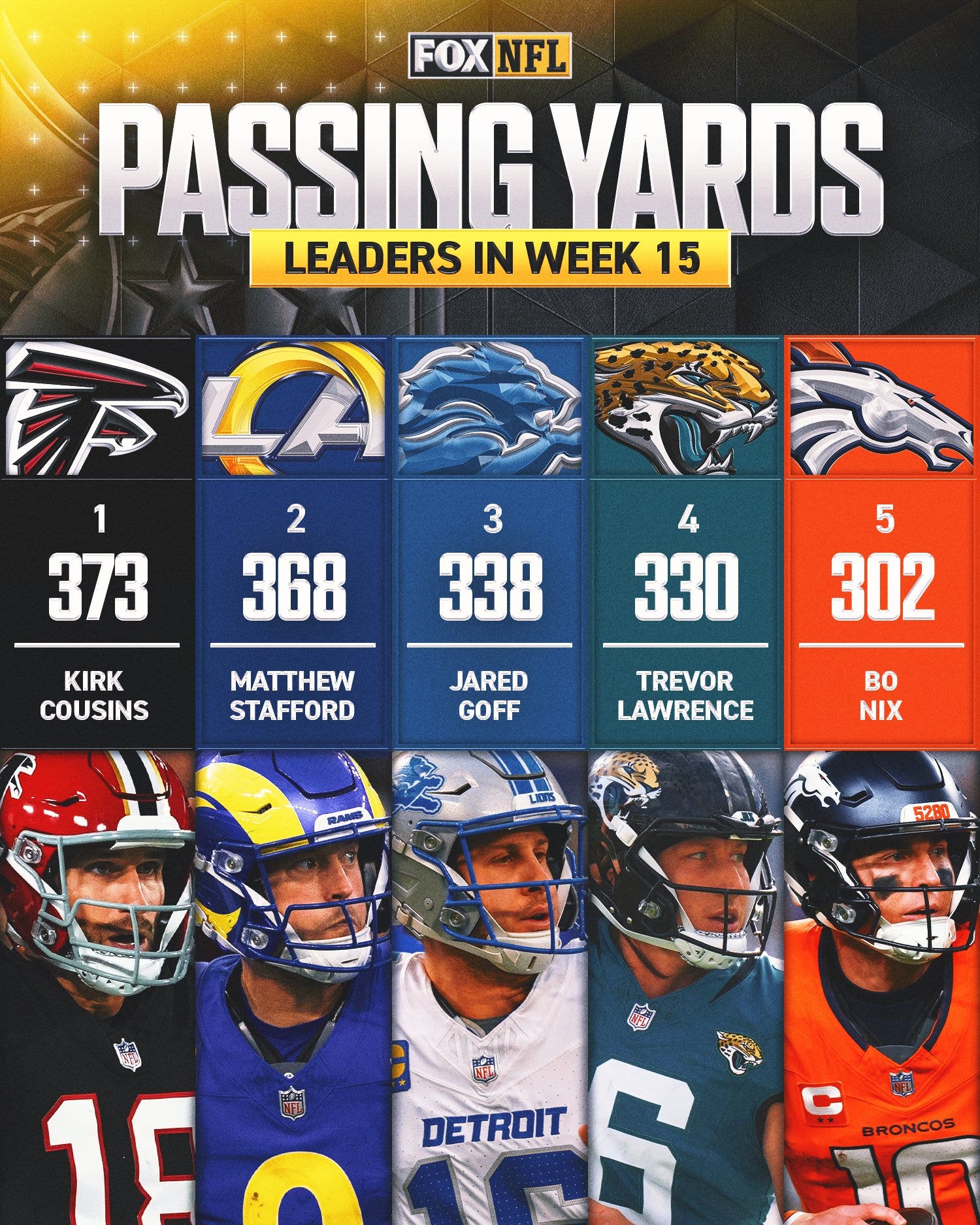 Nix’s MVP odds improved from +10000 last week to +7500, moving him up to No. 4 on the list, according to DraftKings Sportsbook. Matthew Stafford is the clear frontrunner this week at -300, while Drake Maye took a step back at +425 and Josh Allen jumped from +1500 to +550 after leading the Buffalo Bills to a comeback win over the New England Patriots.