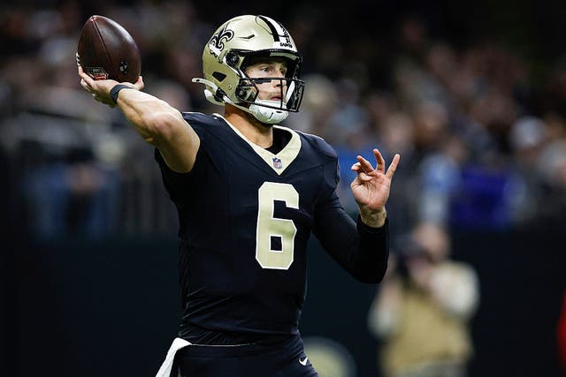 Tyler Shough #6 of the New Orleans Saints throws a pass during the second quarter against the Carolina Panthers at Caesars Superdome on December 14, 2025 in New Orleans, Louisiana. (Photo by Sean Gardner/Getty Images)