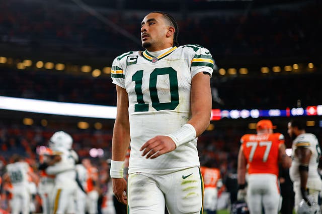 Jordan Love #10 of the Green Bay Packers walks off the field after the 26-34 loss to the Denver Broncos at Empower Field at Mile High on December 14, 2025 in Denver, Colorado. (Photo by Justin Edmonds/Getty Images)