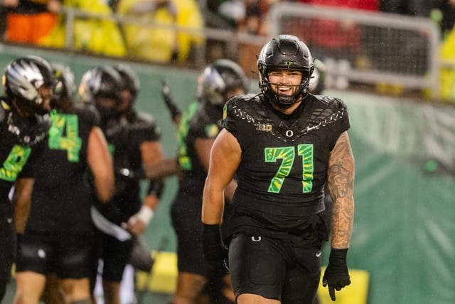 Alex Harkey was a part of a strong offensive line at Oregon. (Photo by Ali Gradischer/Getty Images)