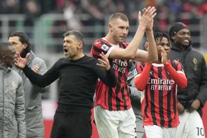 ROME (AP) — New AC Milan coach Sergio Conceição dropped down to his knees on the San Siro sideline, unleashed a loud scream and then wrapped his arms around an assistant in an emotional embrace when Samuel Chukwueze bundled in…