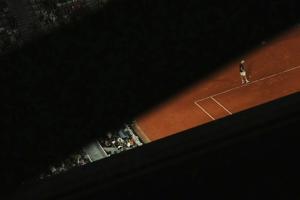 AP PHOTOS: Light and shadows add an extra dimension at the French Open tennis tournament