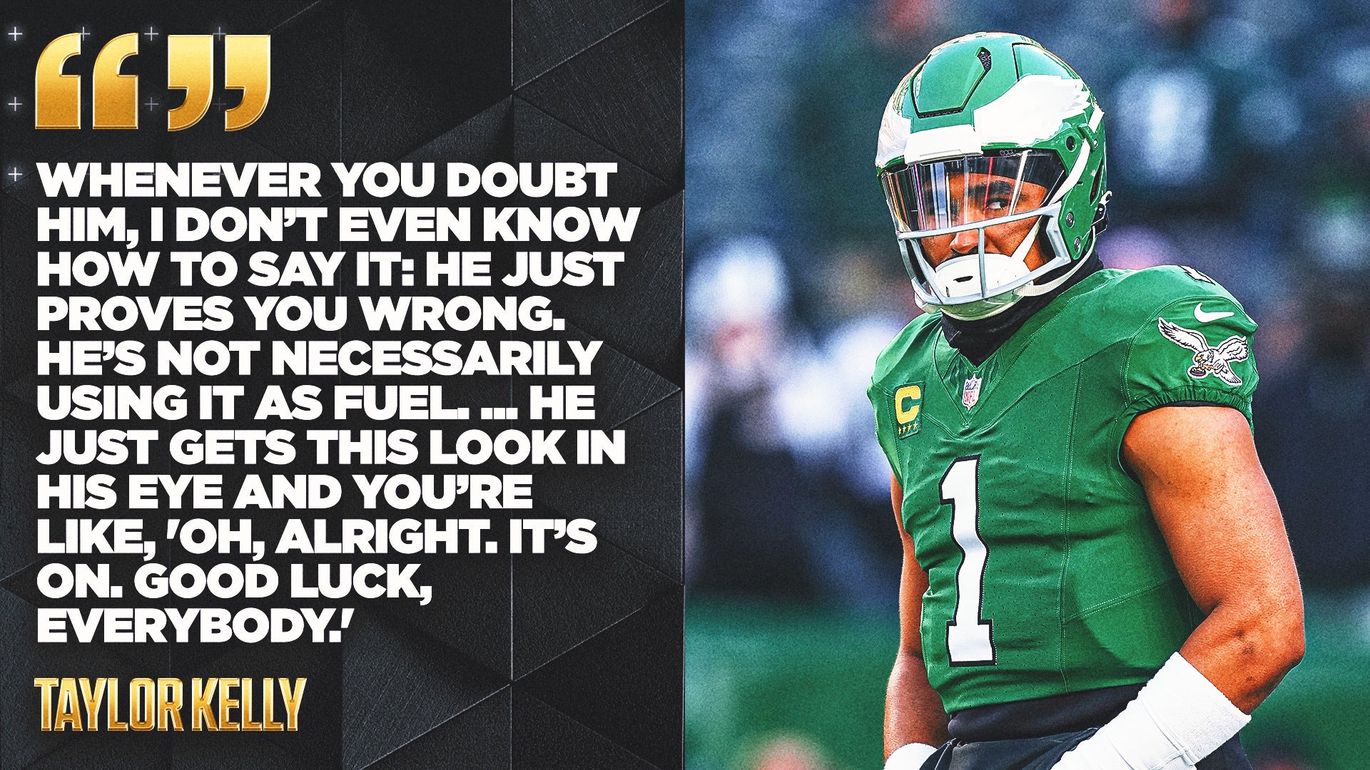 Hurts would never admit to being affected by circumstances or doubters. But Kelly knows.