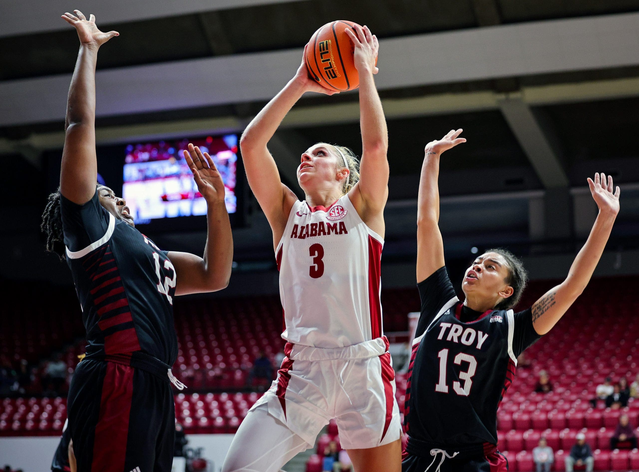 Troy swarms underneath the basket as a rule, and leads Division I in rebounding because of it. (Photo by Brandon Sumrall/Getty Images)