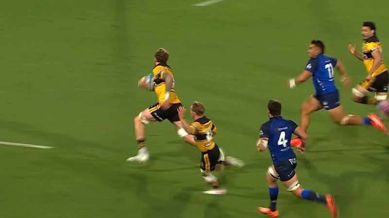 Giant Hurricanes lock Warner Dearns lands a hammer blow against the Force in Napier.March 13, 2026 — 7.06pm
