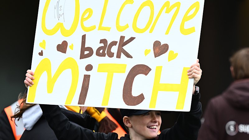The Hawk has a set shot at goal. Sure, it’s a junk-time moment. But Ginnivan kicks truly and suddenly the margin has blown out. Ginnivan then brings the arms out for an “aeroplane moment”. It’s discreet, but certainly not missed. The cameras pan to Port coach Ken Hinkley, who offers a wry smile.