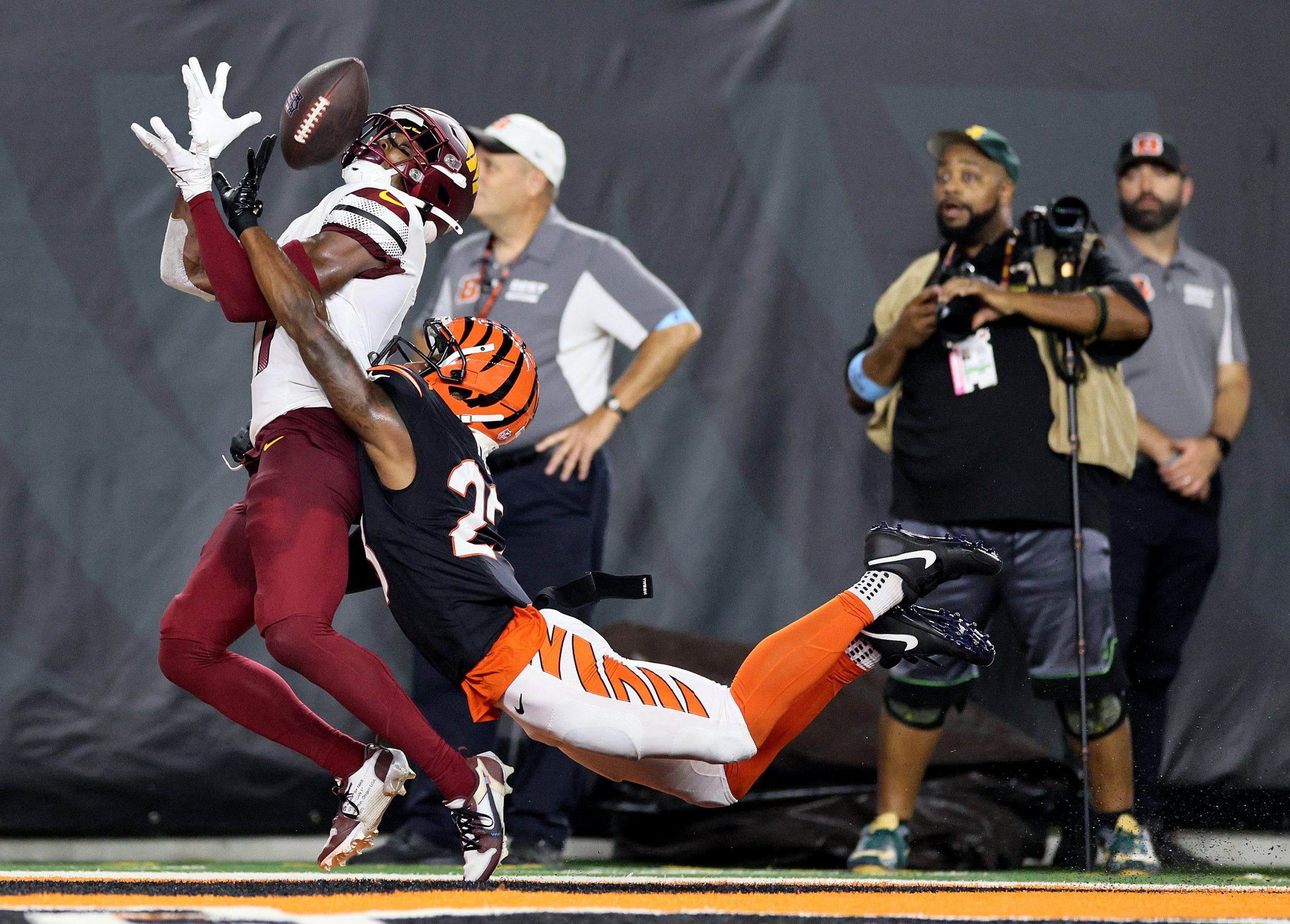 Daniels’ first career touchdown pass was a 1-yard toss to eligible tackle Trent Scott to start the second half, the second straight game in which the Bengals gave up a TD to a lineman. And Daniels stayed in the pocket, took a hit and connected with Terry McLaurin from 27 yards out with 2:10 remaining for the game-sealing score.
