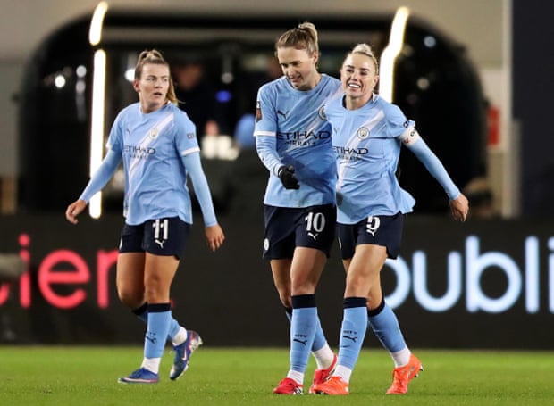 A ruthless first-half display saw City score four goals in 16 minutes when Khadija Shaw nodded home and Miedema scored twice in quick succession before Yui Hasegawa’s strike gave the league leaders a 4-0 advantage at half-time.