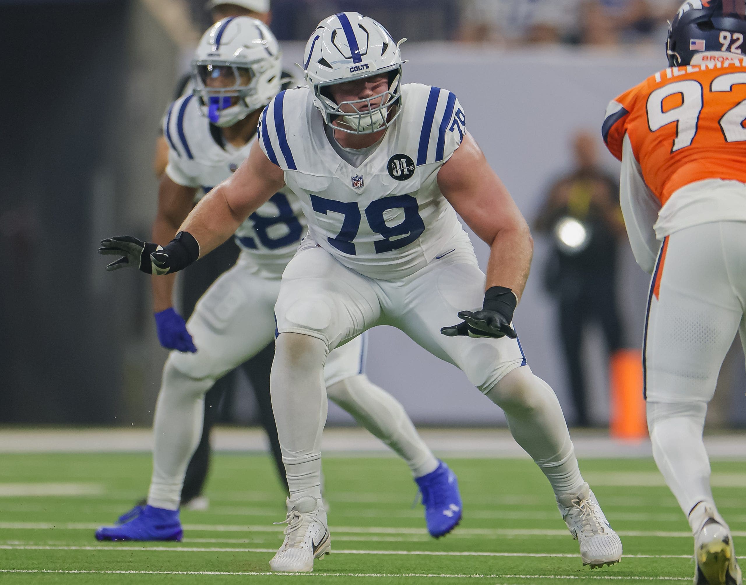 By some metrics, Bernhard Raimann has been one of the game’s best offensive tackles this season. (Photo by Michael Hickey/Getty Images)
