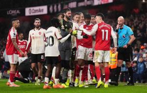 LONDON (AP) — Arsenal winger Gabriel Martinelli apologized to Conor Bradley after bundling the injured Liverpool defender off the field in the final seconds of the teams’ 0-0 draw in the Premier League on Thursday.