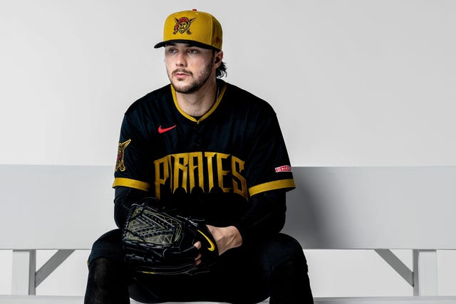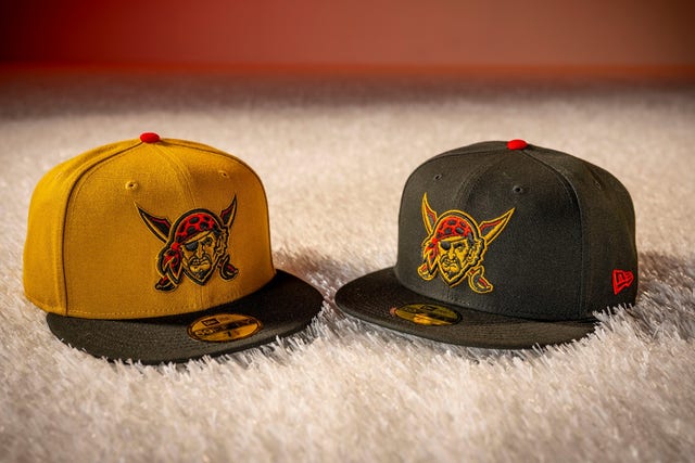 “Built around Pittsburgh’s unmistakable black and gold identity, the uniform features a rugged, pirate-style wordmark whose font draws inspiration from the city’s ‘Sister Bridges.’ Red accents and Jolly Roger elements add boldness without breaking the city’s iconic color palette.”
