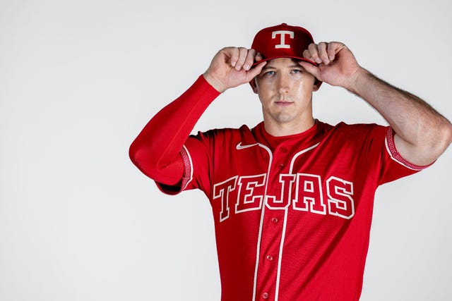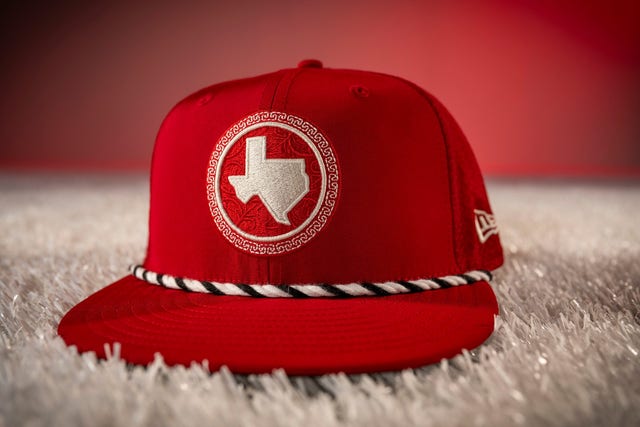 “Cochineal red anchors a design steeped in Texas and Mexican heritage, highlighted by the ‘Tejas’ chest wordmark, a charro-embossed belt and mariachi-inspired fill patterns.”