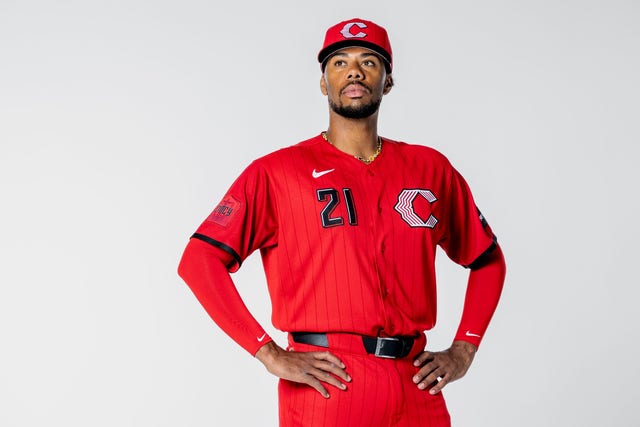 “Embracing the color that defines the franchise, pinstripes make a modern comeback in a tone-on-tone style and a nod to the popular vest-style jersey last worn more than two decades ago. A sleeve graphic features the iconic Tyler Davidson Fountain, which begins flowing each year around Opening Day.”