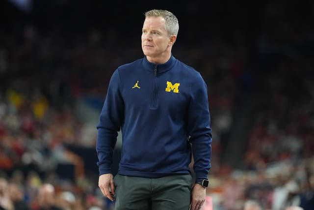 Michigan head coach Dusty May looks on from the sideline against Arizona. (Photo by Erick W. Rasco/Sports Illustrated via Getty Images)