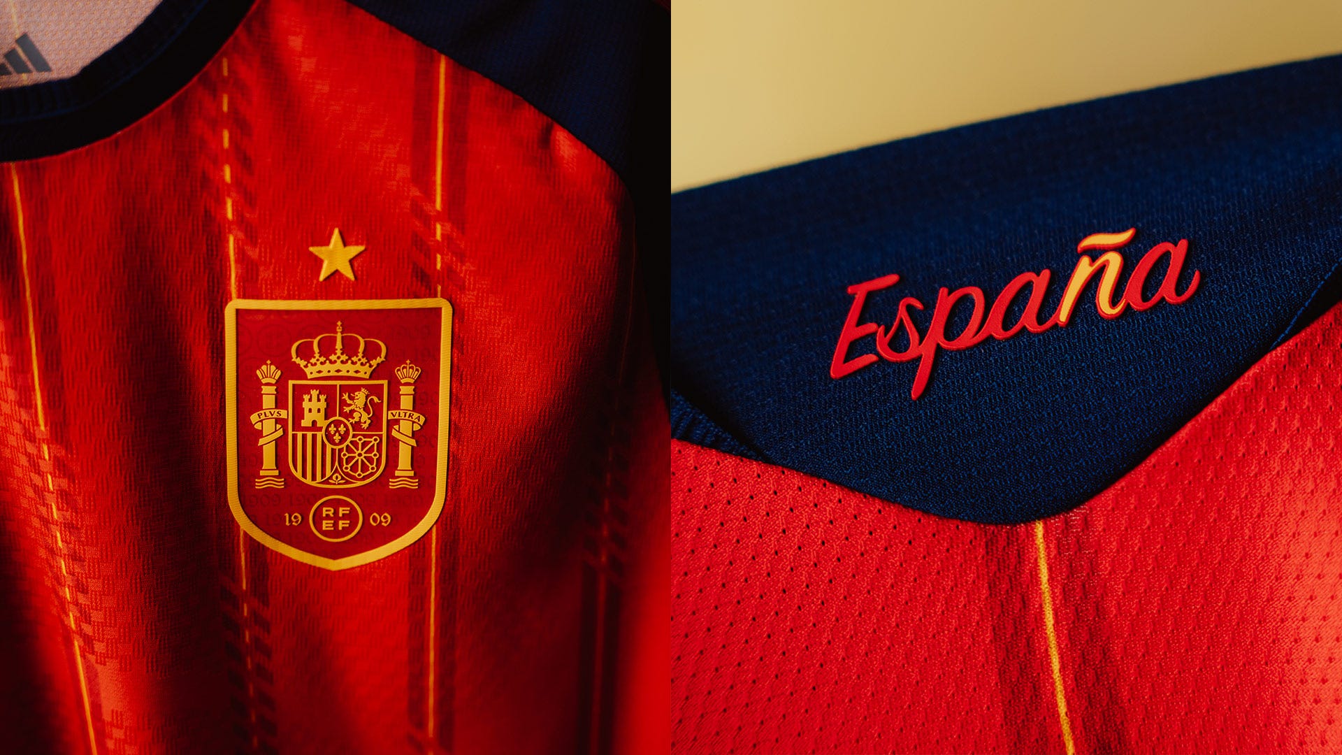 If you look closely, you can see the yellow pinstripes are bordered by a darker shade of red that coincides with the background of the crest. The back of the neck incorporates “España” in a unique script with both the lower-case N and tilde getting the highlight treatment.