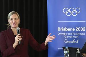 BRISBANE, Australia (AP) — Kirsty Coventry has completed a ceremonial baton change before she takes over as International Olympic Committee president next month, handing off oversight of preparations for the Brisbane 2032 Games during a three-day inspection visit to southeast…