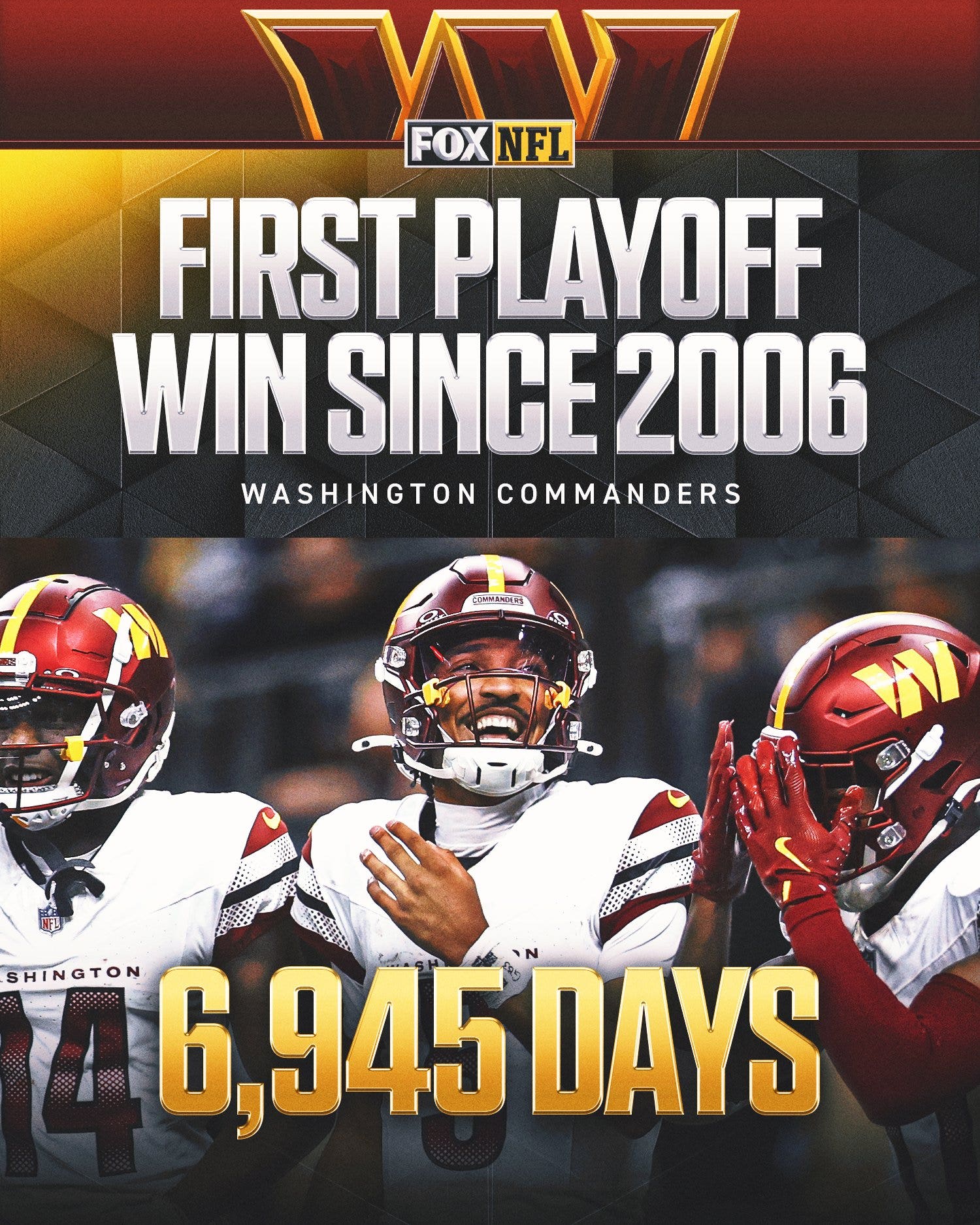 It had been 19 years since the Washington franchise scored a postseason win. That last victory also happened at Raymond James Stadium in Tampa, 17-10 over the Buccaneers. Joe Gibbs was the Washington coach and it came despite Quarterback Mark Brunell only passing for 41 yards. The next week, they lost to Seattle.