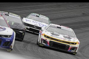 CONCORD, N.C. (AP) — Ross Chastain stood on top of his No. 1 Chevrolet in his white fire suit and held a watermelon above his head as the crowd at the Charlotte Motor Speedway roared with delight in anticipation.