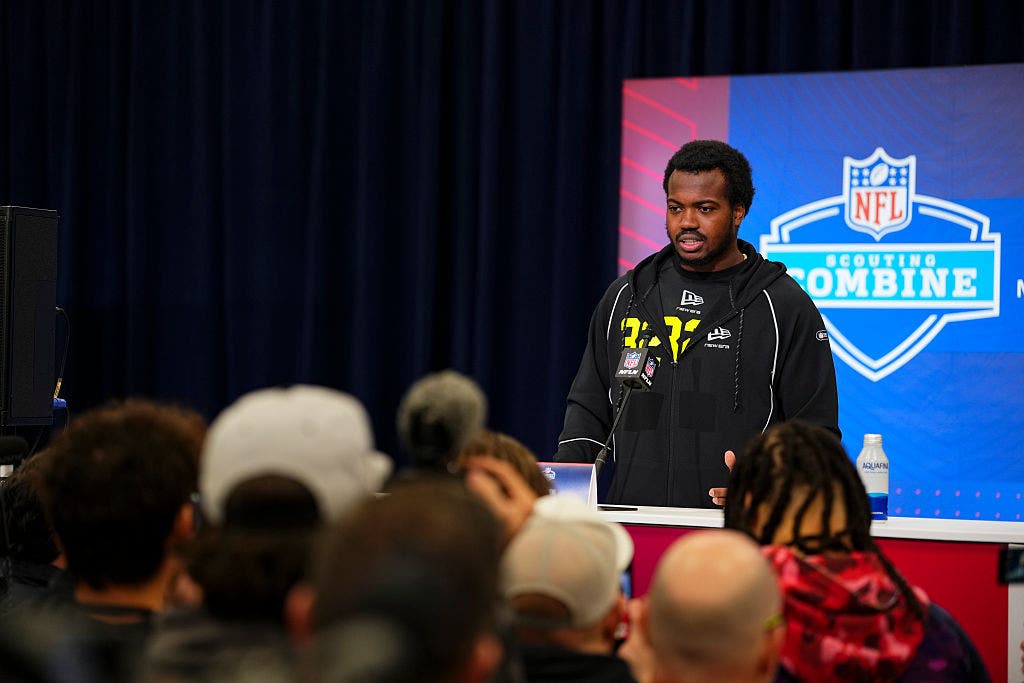 Rueben Bain speaks during a press conference at the 2026 NFL Scouting Combine on Feb. 25, 2026, in Indianapolis. (Photo by Cooper Neill/Getty Images)