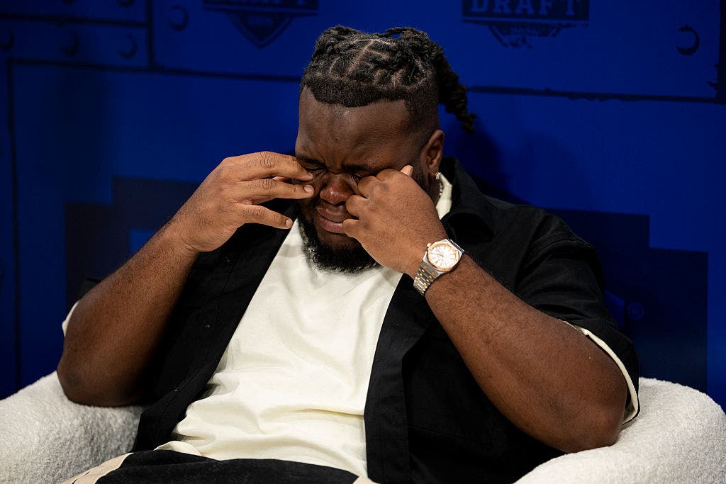Ohio State defensive tackle Kayden McDonald was emotional after being selected by the Houston Texans with the 36th pick of the 2026 draft. (Photo by Michael Owens/Getty Images)