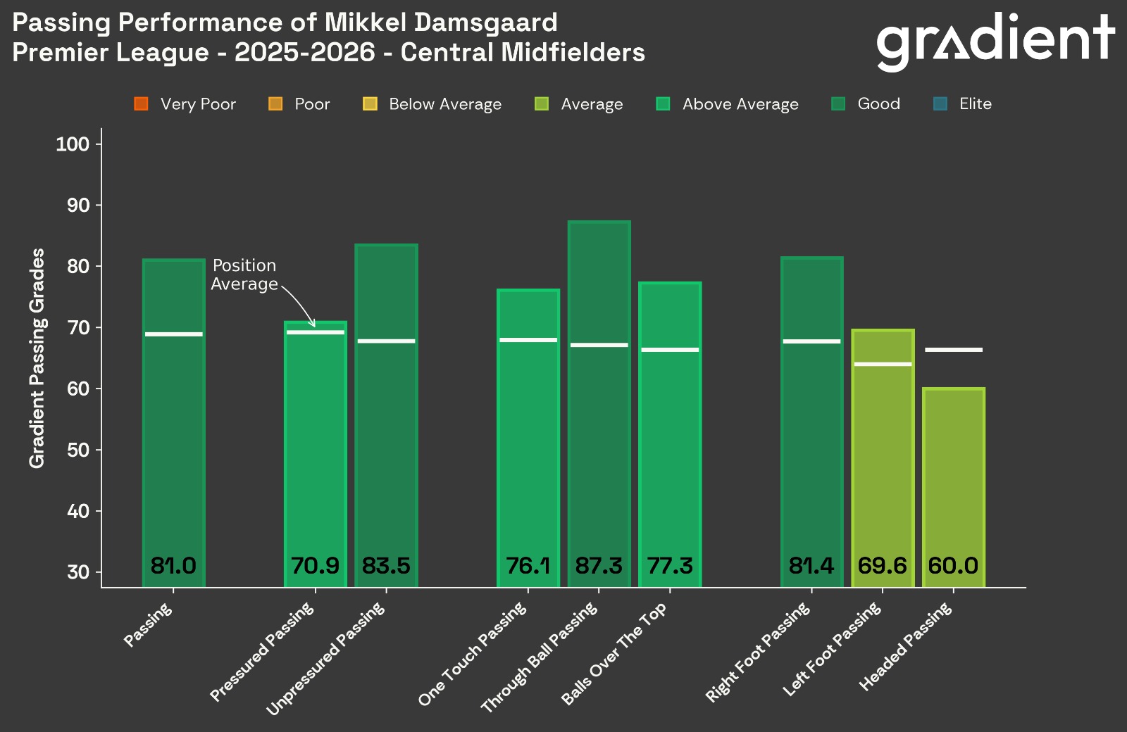 There are suggestions that Keith Andrews’ direct approach limits the Dane’s impact but he is still pulling strings. Of all central midfielders and attacking midfielders, only Morgan Rogers has played a higher percentage of his passes into dangerous areas; only Fernandes and Casemiro have played more passes resulting in a clear chance; and no attacking midfielder has played more big-time passes, defined by our friends at Gradient Sports as ‘higher difficulty passes played accurately, usually taking defenders out leading to a chance or at least a dangerous position’.