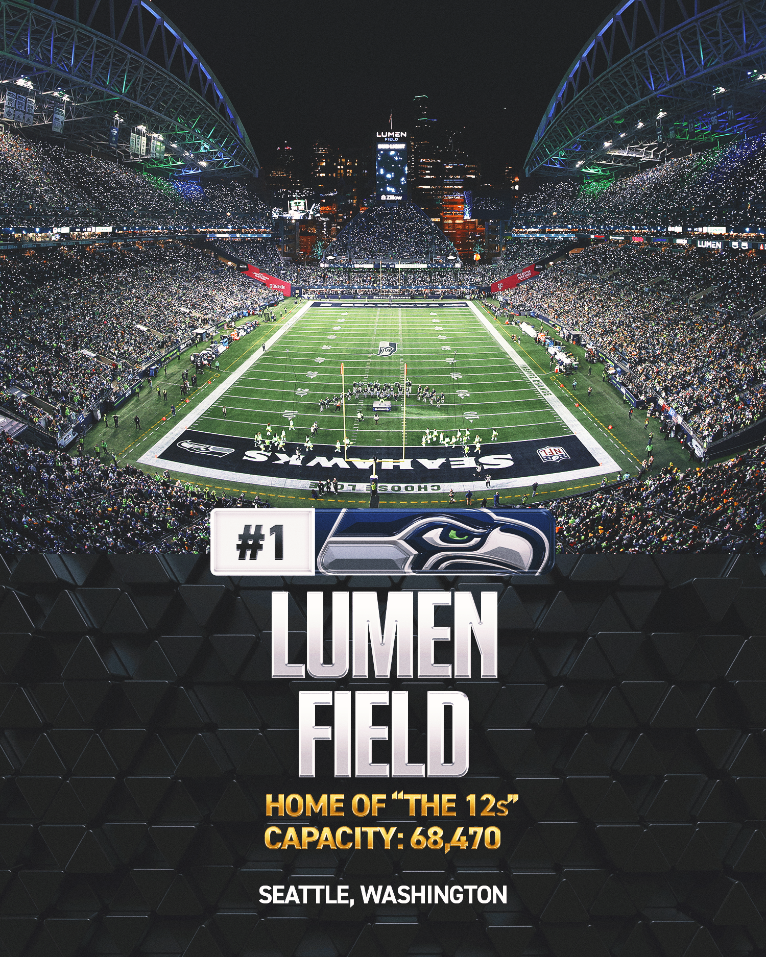 The home of the 12th man, the Seahawks retired the No. 12 jersey in 1984 to recognize the impact of the noise fans created during the franchise’s time in the Kingdome before moving to what is now known as Lumen Field in 2002.