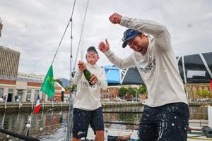 Two French sailors in a 35-foot boat are set to win handicap honors in the Sydney to Hobart race