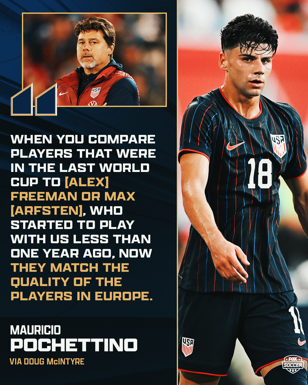“We identified in these guys that there was the potential to improve,” Pochettino told me in reference to Arfsten, Freeman, Freese and others. “When you compare players that were in the last World Cup to Freeman or Max, who started to play with us less than one year ago, now they match the quality of the players in Europe. That is evident. It’s obvious that they’re now at the same level.”