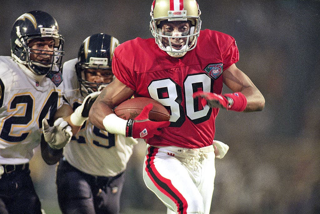 Jerry Rice, the quintessential No. 80, simply ran away from the competition, much like he did against the Chargers in Super Bowl XXIX. (Photo by Bill Frakes /Sports Illustrated via Getty Images)