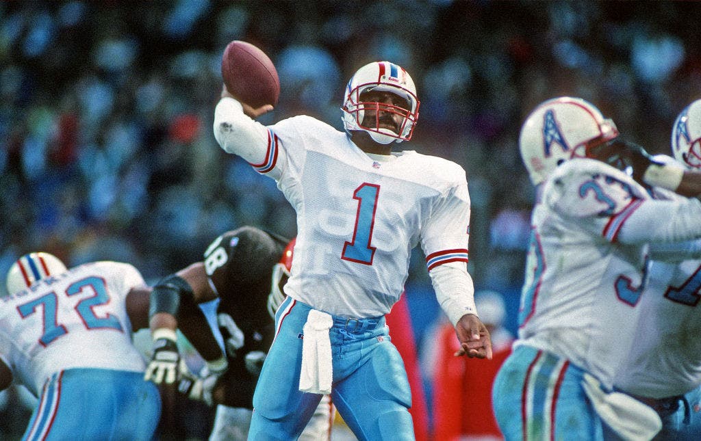 It took Warren Moon six years to get to the NFL, but he made the most of it when he arrived, throwing for 291 touchdowns in 17 seasons. (Photo by George Gojkovich/Getty Images)