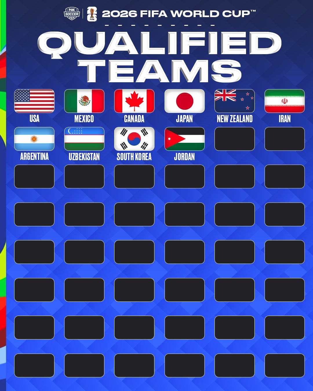 There are now 10 teams – Argentina, Japan, Jordan, New Zealand, Iran, South Korea, and Uzbekistan, along with co-hosts United States, Canada and Mexico – that have qualified for the 2026 World Cup.